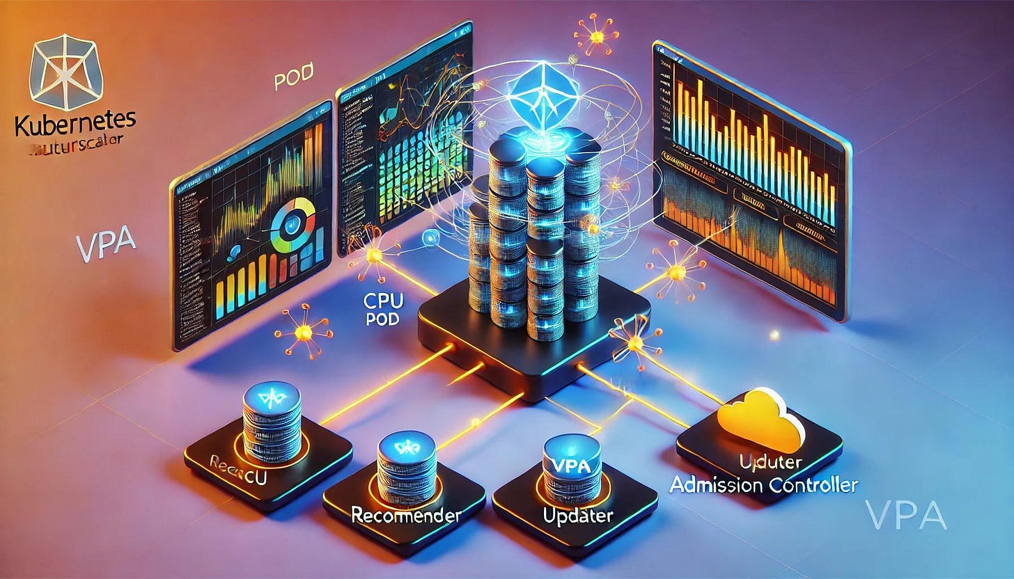 The Vertical Pod Autoscaler (VPA) is a Kubernetes resource that automatically adjusts the CPU and memory resource requests of containers in pods based on usage. This ensures that workloads have the right amount of resources to perform efficiently, avoiding under- or over-provisioning.